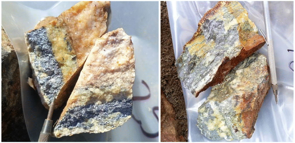 - Quarry Property – Numerous galena-bearing quartz veins were sampled from both outcrop and float across multiple zones, strengthening the case for widespread lead-silver mineralization.