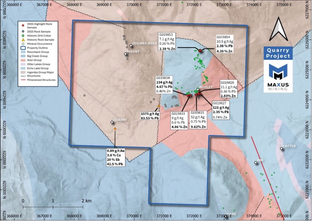 “These results reinforce the strong polymetallic potential at Quarry and highlight the presence of a structurally controlled Ag–Pb–Zn ± Sb system across the Property,” said Scott Walters, Chief Executive Officer of Maxus Mining Inc. “The grades returned from several samples, combined with the scale of the mineralized corridor identified in historical and recent work, suggest the system has significant exploration upside.”“We believe Quarry represents another important component of Maxus’ growing portfolio of critical and strategic metals projects in British Columbia,” Walters added. “Our technical team will continue advancing the Project through detailed modeling and data integration, leading into developing drill plans and spacing studies designed to expand on these known mineralized trends, in particular the Bullseye Zone.”