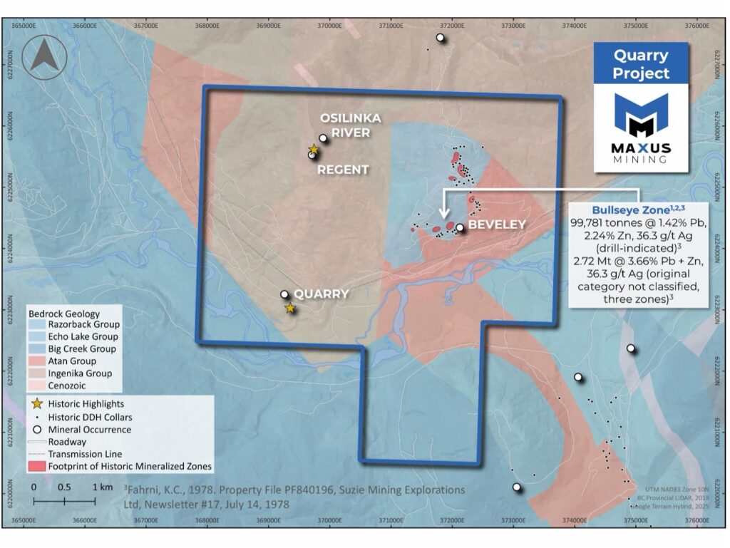 3 Maxus Mining Corp. (2025). Maxus Mining highlights historical polymetallic results at the Quarry Project in British Columbia, Canada [news release]. https://maxusmining.com/maxus-mining-highlights-historical-polymetallic-results-at-the-quarry-project-in-british-columbia-canada/